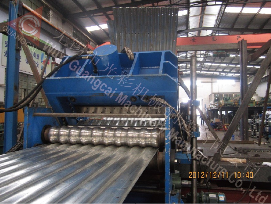 2.     壓型波紋板, 沖孔, 拱彎和剪切在一條線(xiàn)上一次完成, 板頭不會(huì )出現直頭, 易于裝配, 生產(chǎn)速度也得到提高